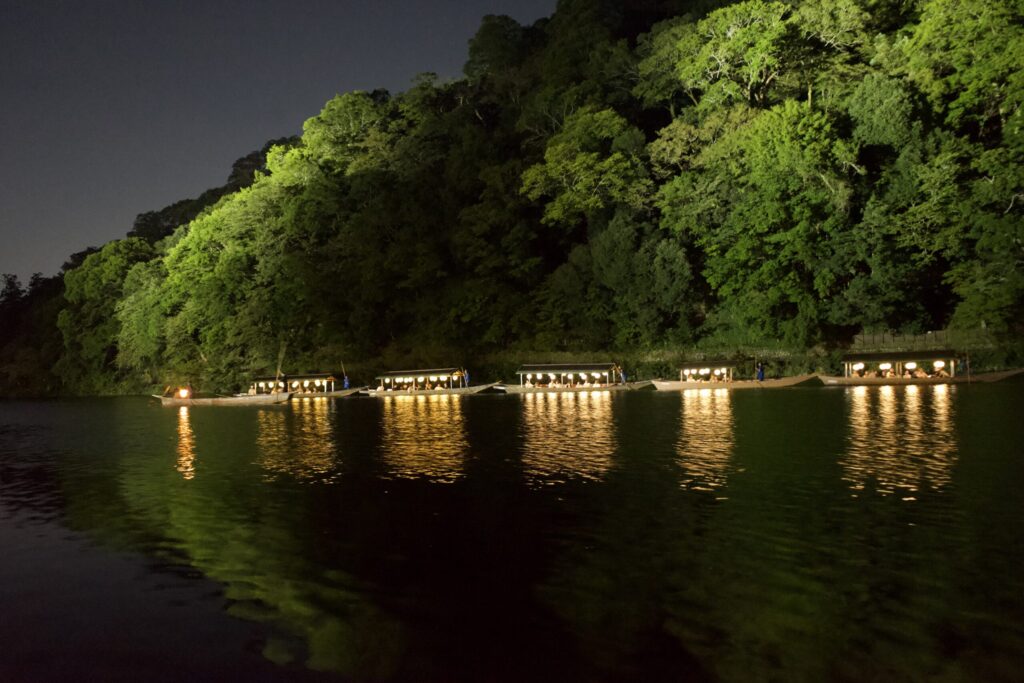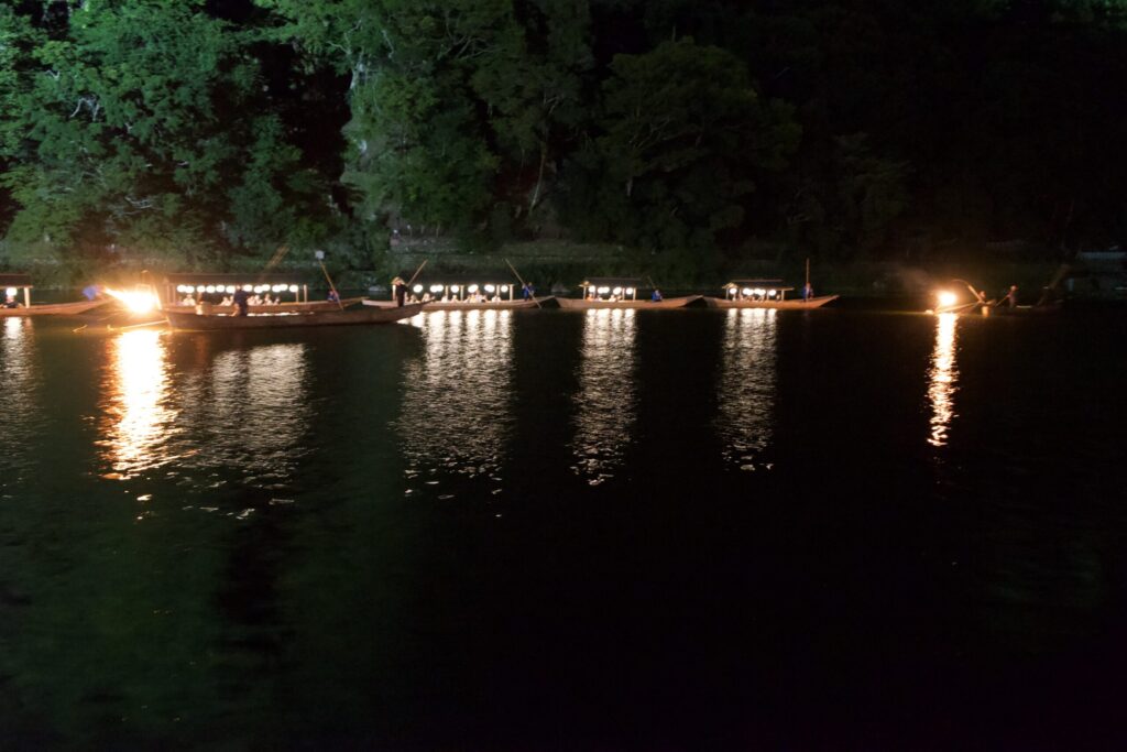 The Arashiyama Cormorant Fishing, which is held every night in the summer, is about to begin.