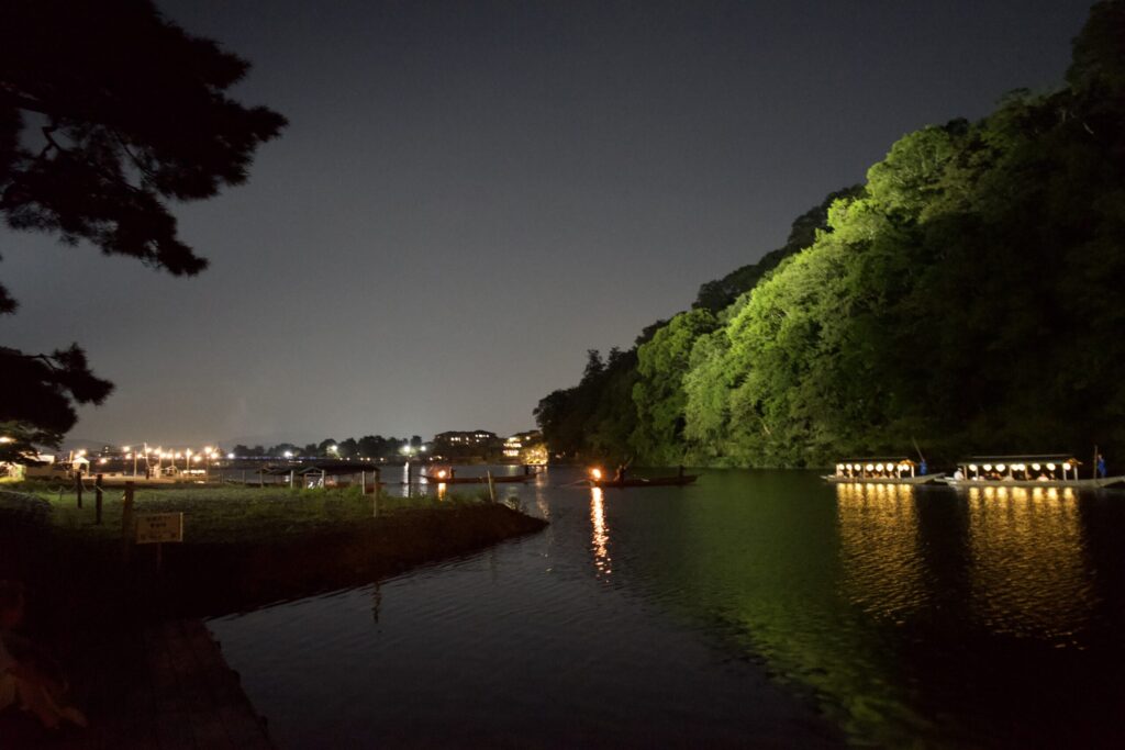 夏に毎晩行われている嵐山の鵜飼です。風が吹いていて涼しくて過ごしやすいです。昔は夜でも手漕ぎボートがものすごく流行っていてさらに岸辺では花火遊びもやり放題でした。今はどちらも禁止となりましたが当時は夏の情緒に浸れるデートスポットでもありました。