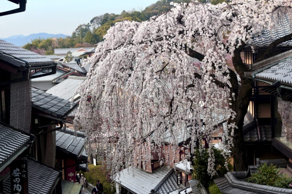 27年前の産寧坂と、オーナーが変わる前?の明保野亭のしだれ桜と、現在の産寧坂&倒木後の桜があった場所に置かれていたスイーツの看板です。あれほど愛されていた桜が、なんの弔いもされていないのをみると少し悲しい気持ちになりました。
