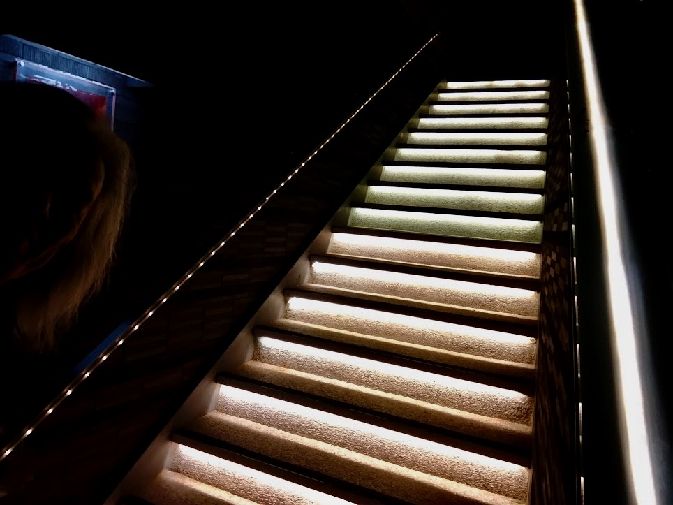 いつも出演させていただいている、六本木「キーストーンクラブ東京」の光の階段。非日常の音の旅へといざなう設えですね♪