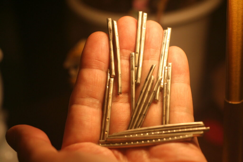 【フレット交換後】数十年間タッピング奏法に耐え抜いたギターのフレットですがその衝撃で凸凹になっているのがわかりますか?この模様を見ていると愛着が湧いて捨てるに捨てられないのです(笑)4月のコンサートからは新しいフレットでのギターで演奏します。さて皆さんには音が新しくなったのがわかるでしょうか?